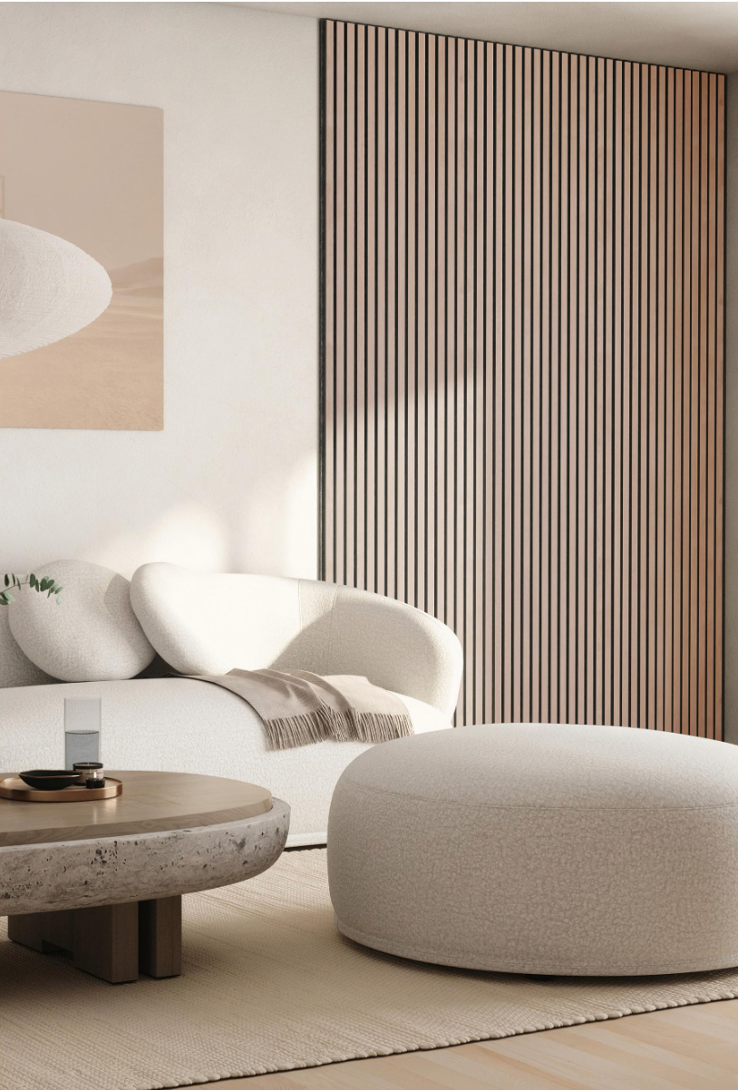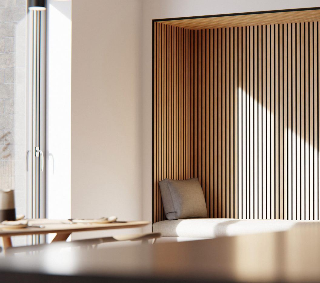 Fjorwall akustikpaneler skaber ro i rummet. De dæmper lyden på en naturlig måde og tilfører samtidig en varm, nordisk stemning. En enkel løsning til hjem og rum, hvor det skal føles behageligt at være.